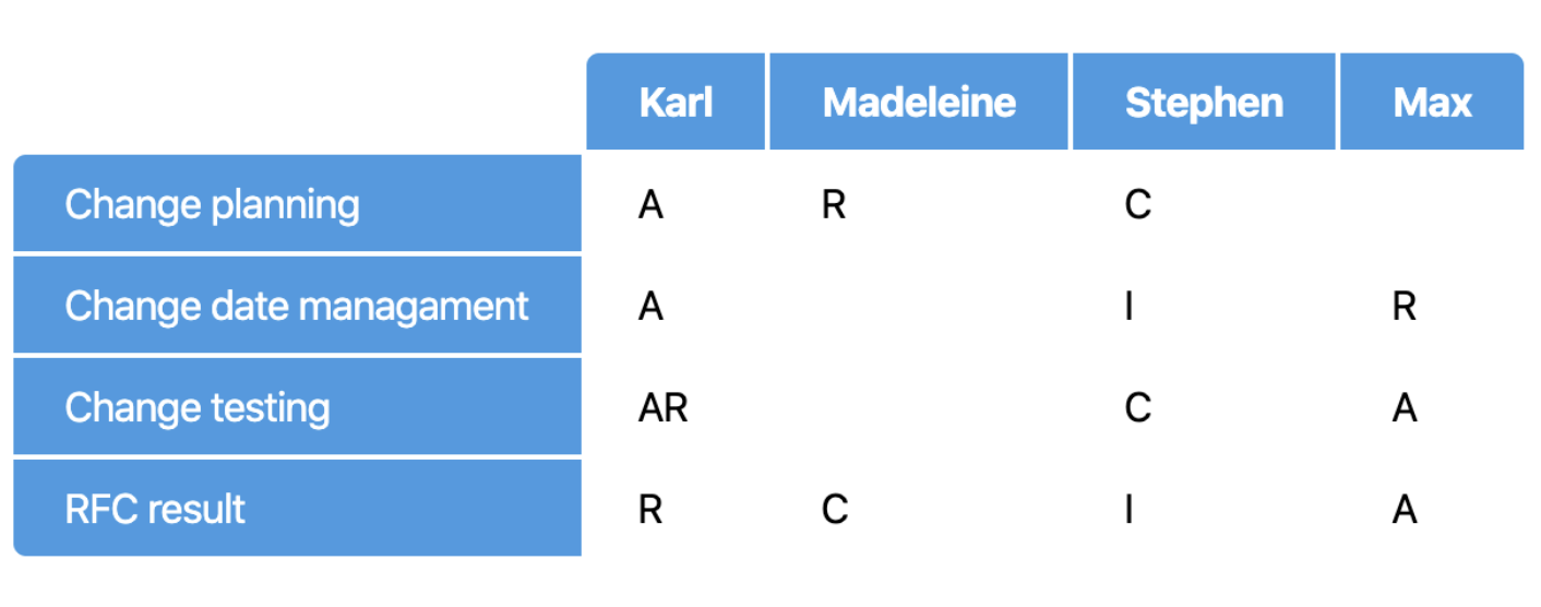 This is a very important question. Because when people don’t understand their roles and responsibilities within an IT change management request, the system can get gummed up with overdue tickets, unprocessed requests, and stalled projects. This creates costly inefficiencies that increase the risk of projects reaching the implementation phase without proper approval.